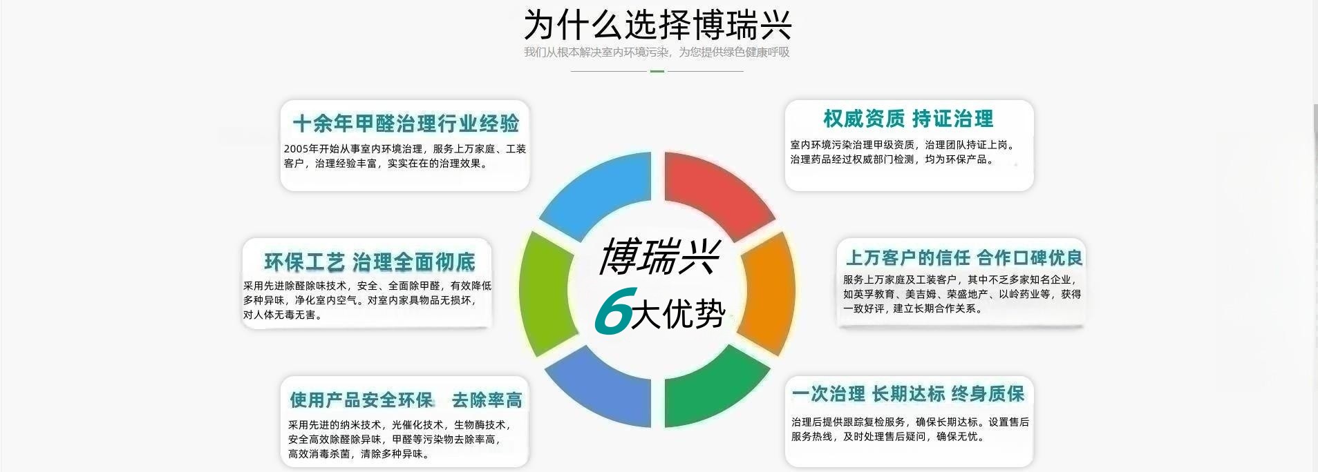 石家莊博瑞興生物科技有限公司是專業從事室內環境凈化、室內空氣污染治理的高科技環保企業,公司致力于全方位解決工裝、家庭、寫字樓、醫院、賓館、學校、商場、銀行、娛樂場所等因甲醛、苯、甲苯、二甲苯、TVOC、氨及多種異味引起的室內環境污染問題。 公司采用先進的檢測儀器和科學的治理方法,專注的技術團隊嚴格按照國標技術規范開展服務,擁有完善的質量保障和售后體系,以提高室內空氣質量,改善人類居住環境為己任,不斷加強技術創新和團隊的培養。 博瑞興堅持持續性品質、口碑與服務,良心匠心精細化除醛除味,秉承著誠信、負責、務實的態度為您的提供健康、優質的環境,以優質的環保產品、專業的除醛技術和精湛的施工為每一位客戶提供誠摯的環保服務!
